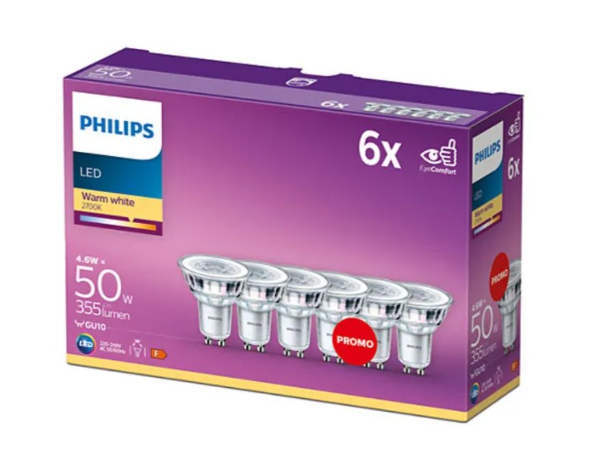 PHILIPS spuldzes LED GU10 4,6W 355Lm warm white Non-dimmable Spot (set of 6 spuldzes) 8718696586013 929001215233