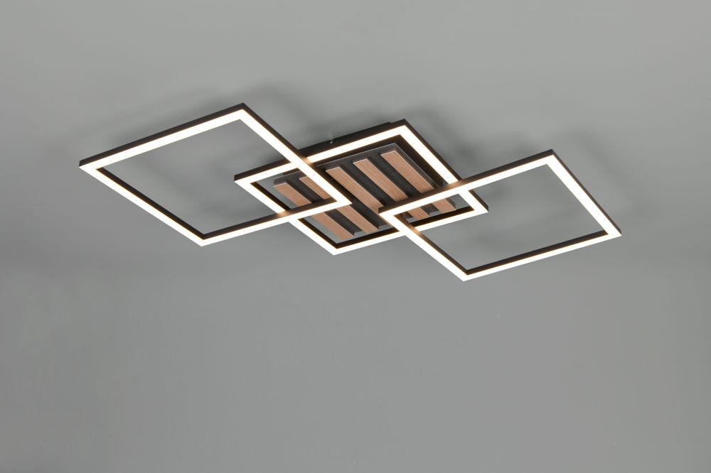 Trio Zaro LED ceiling lamp 3-pc matt black/wood gaismeklis R63403132 4017807682212