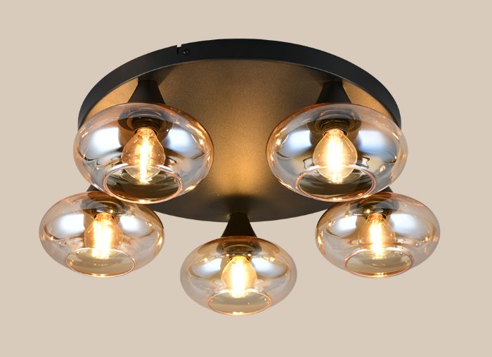 Trio Divina griestu lampa 5-pc E14 matt black/amber R66645013 4017807667455