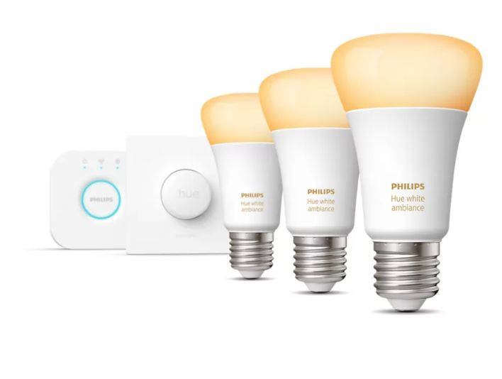 Philips HueWA 8W A60 E27 3 spuldzes + Bridge + slēdzis 929002468405 8719514291270