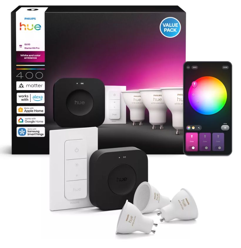 Philips Hue WCA GU10 3 gab + Bridge Pro + slēdzis 929003666513 8720169374546